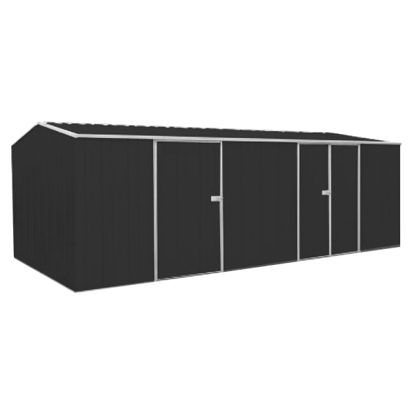 The Yardstore G2010 is a spacious, durable steel shed with a gable roof, double hinged doors, and a single PA door—perfect for storing tools, machinery, and large equipment securely. Comes with free anchor kit and 15 years warranty.